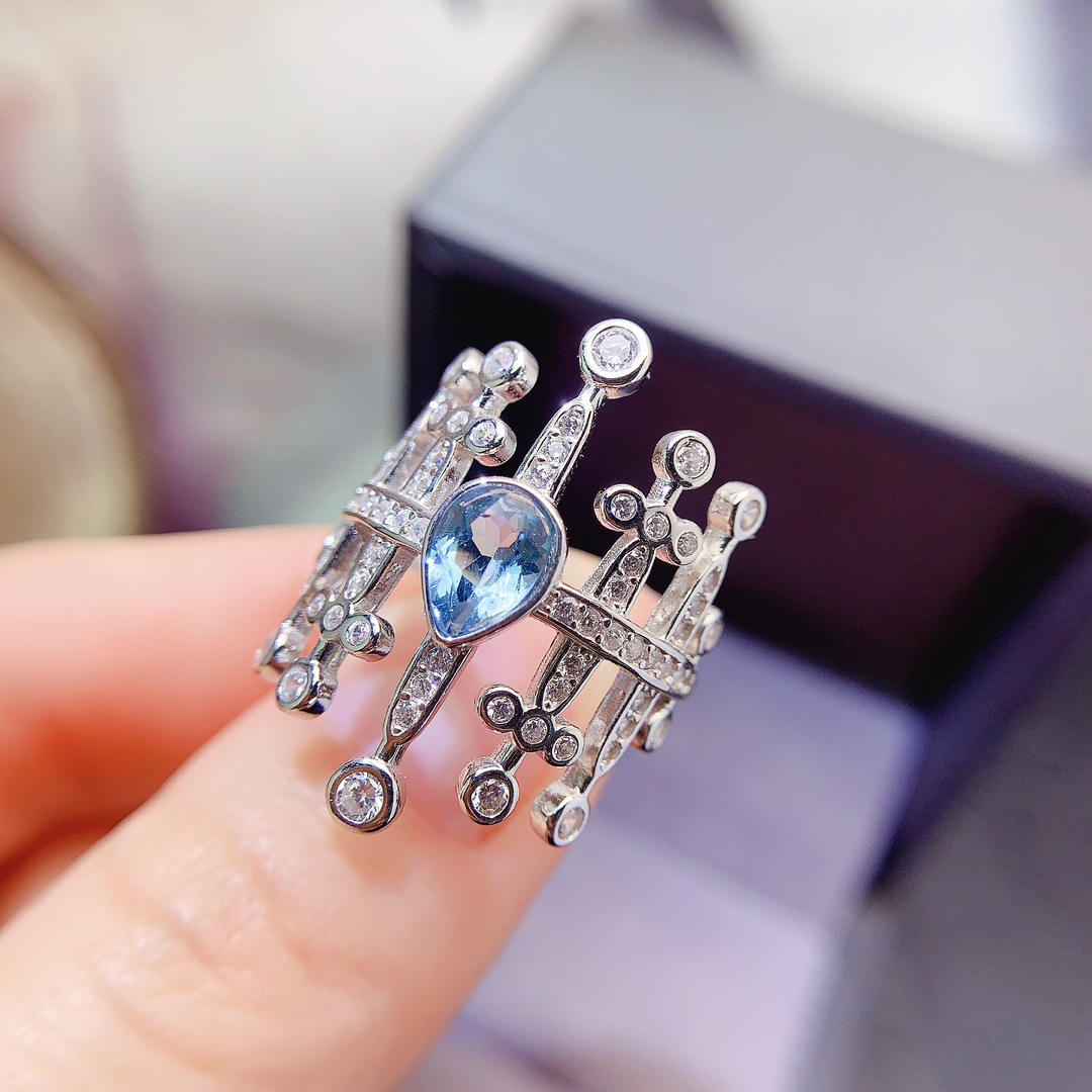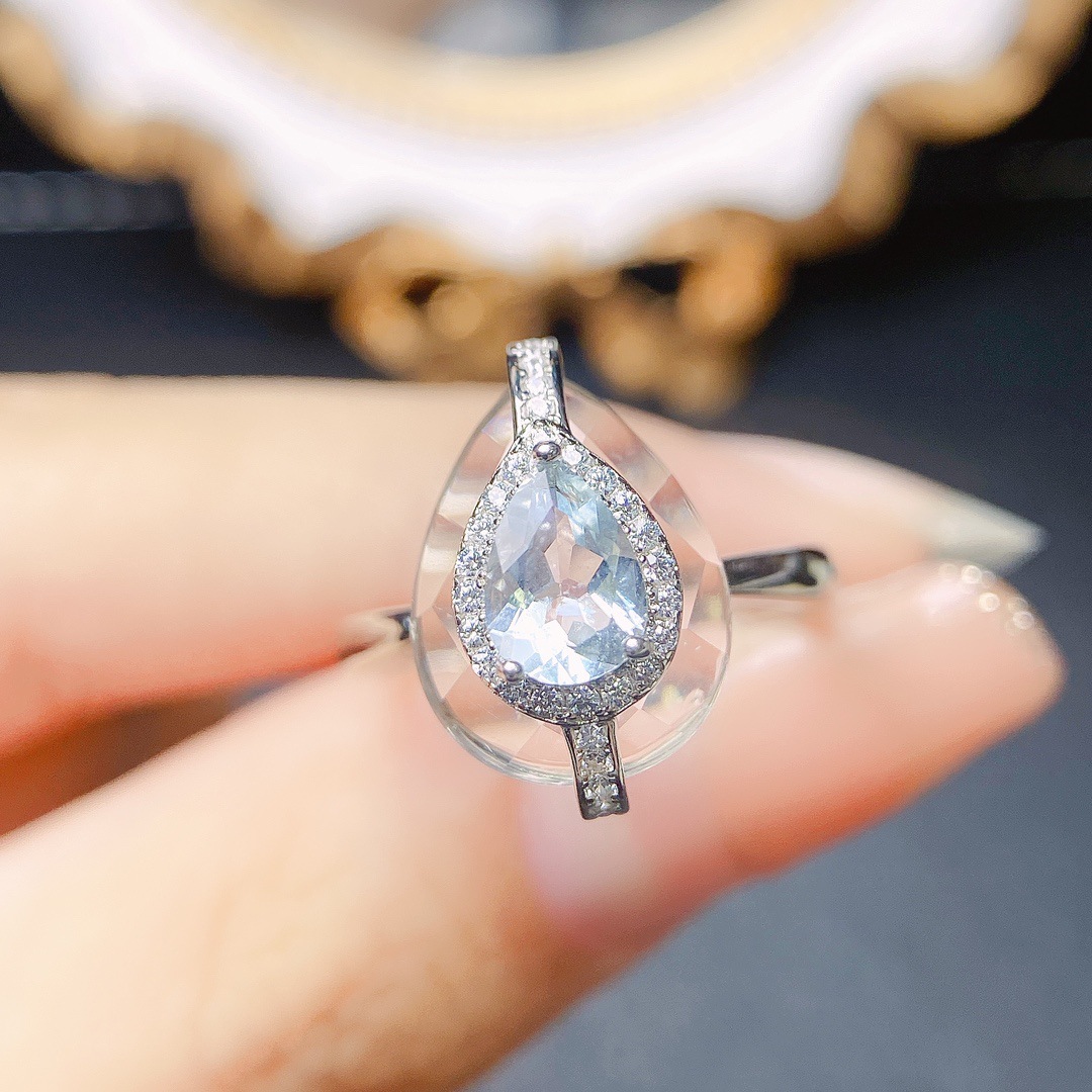 新しい天然アクアマリンリング S925 シルバー象嵌メインストーン 7*9 ミリメートル多用途インターネットセレブホットスタイル女性ジュエリー卸売