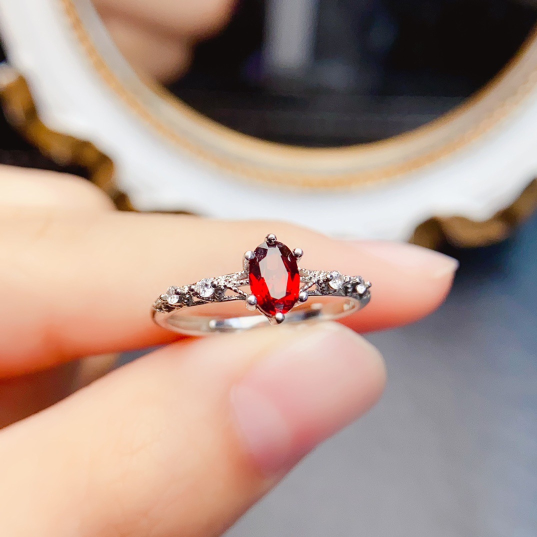 新しい天然ガーネットリング S925 シルバー象嵌メインストーン 4*6 ミリメートル多用途インターネット有名人ホットスタイル女性ジュエリー卸売