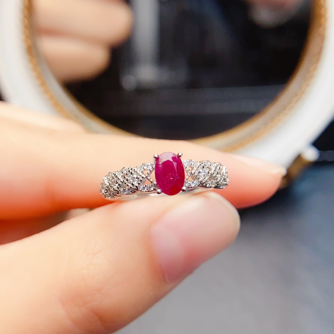 新しい天然ルビーリング S925 シルバー象嵌メインストーン 4*6 ミリメートル多用途インターネットセレブホットスタイル女性ジュエリー卸売