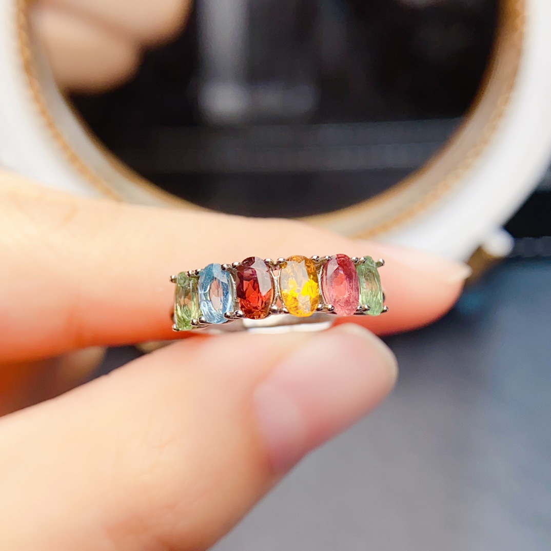 新天然碧璽指輪s 925銀モザイク主3*5mm百合ネット紅爆金女飾り卸売り