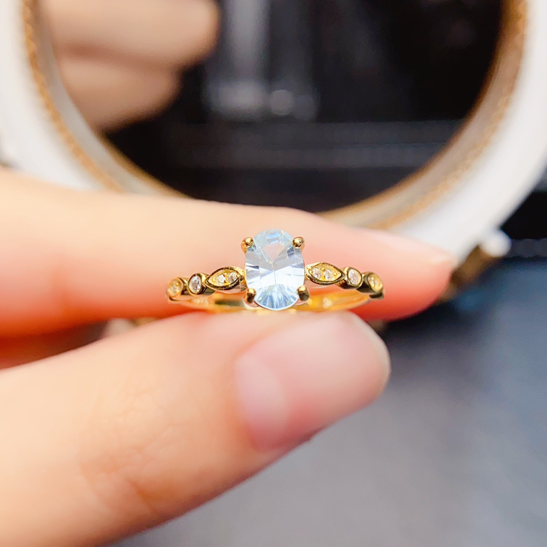 新しい天然アクアマリンリング S925 シルバー象嵌メインストーン 5*7 ミリメートル多用途インターネット有名人ホットスタイル女性ジュエリー卸売
