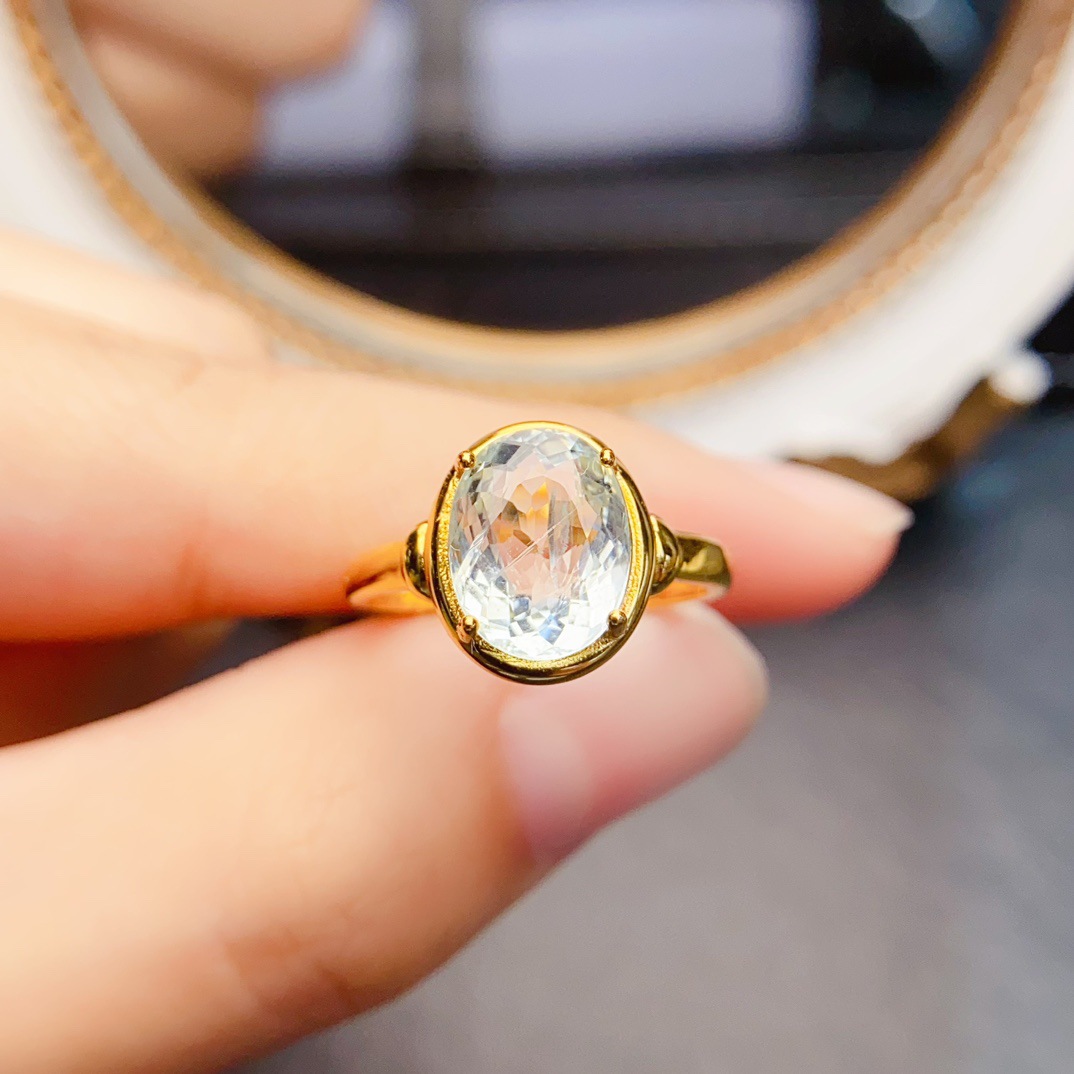 新しい天然トパーズリング S925 シルバー象嵌メインストーン 5*7 ミリメートル多用途インターネットセレブホットスタイル女性ジュエリー卸売