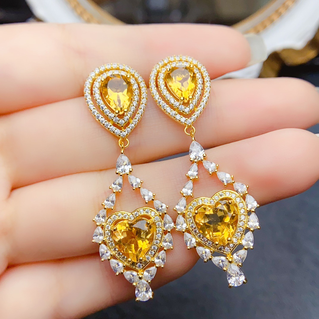 新天然黄水晶ピアスs 925銀モザイク主石6*8mm百合ネット赤爆金女性飾り卸売り
