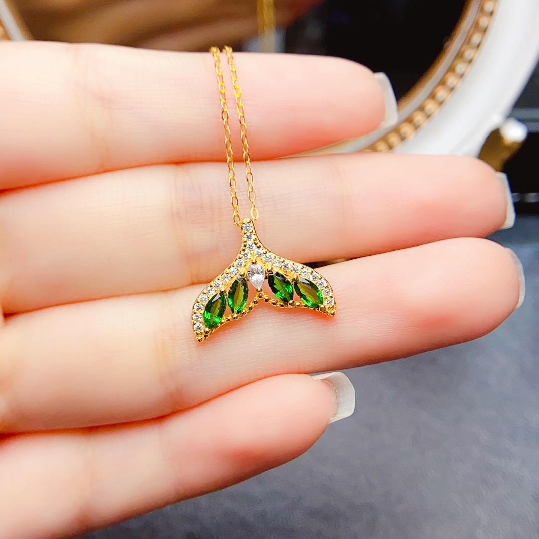 新天然透輝石ペンダントS925銀モザイク主石2*4mm百合ネット赤爆金女飾り卸売り