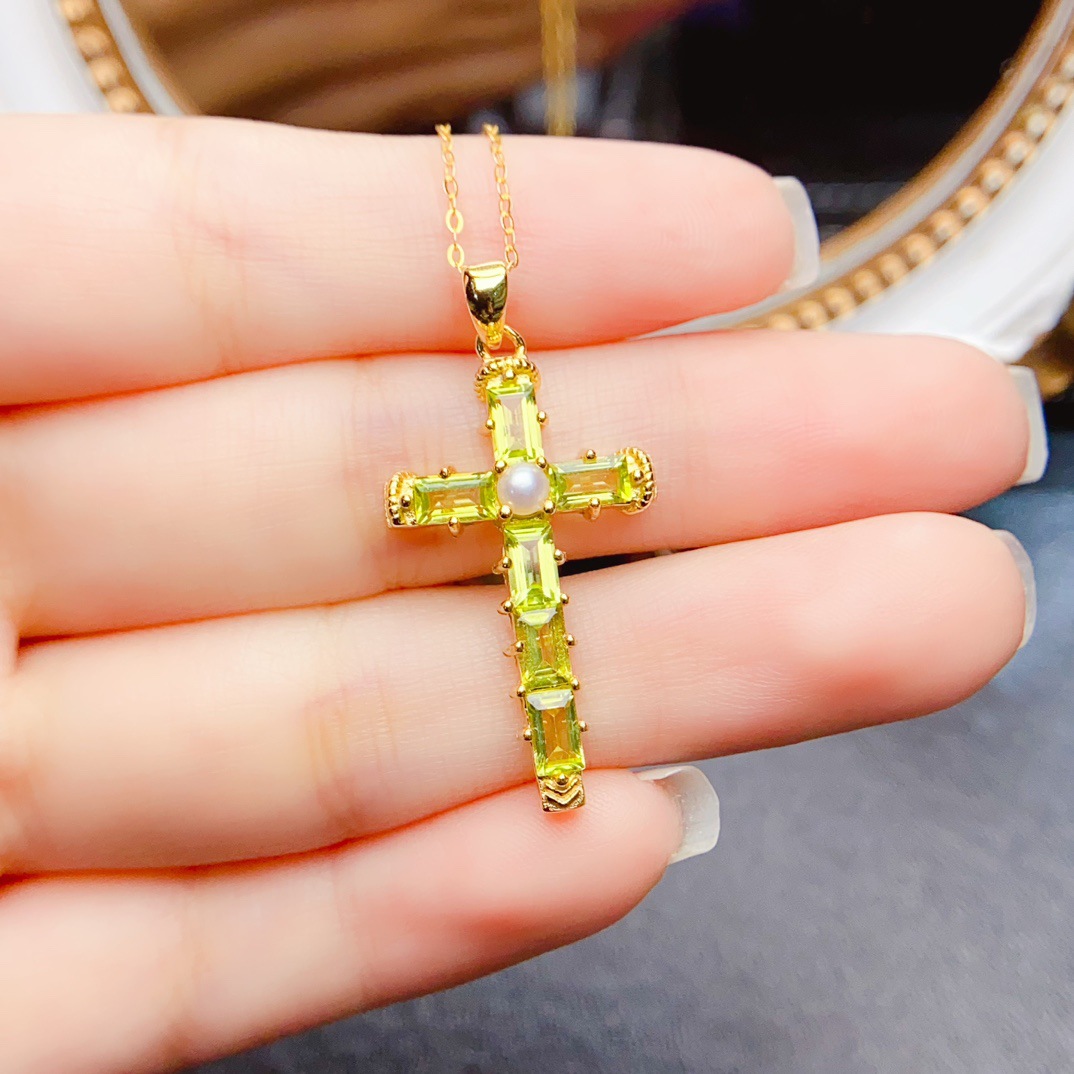 新天然オリーブ石ペンダントS925銀モザイク主石3*5mm百合ネット赤爆金女飾り卸売り