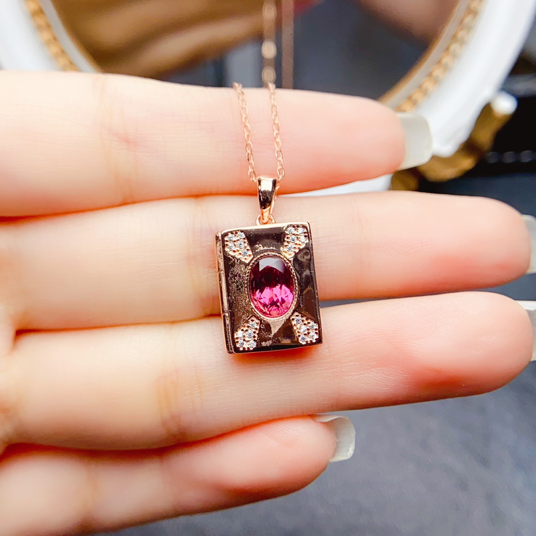 新天然碧璽ペンダントS925銀モザイク主石4*6mm百合ネット赤爆金女飾り卸売り