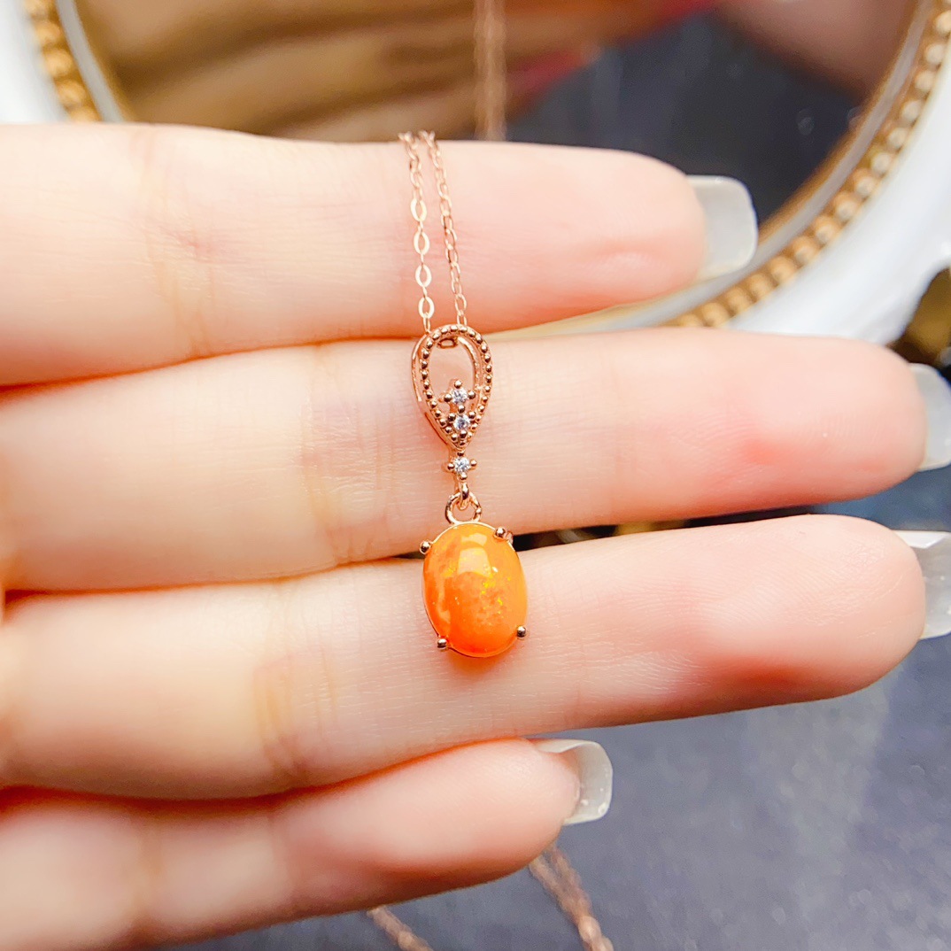 新天然火欧泊ペンダントS925銀モザイク主石7*9mm百合ネット赤爆金女飾り卸売り