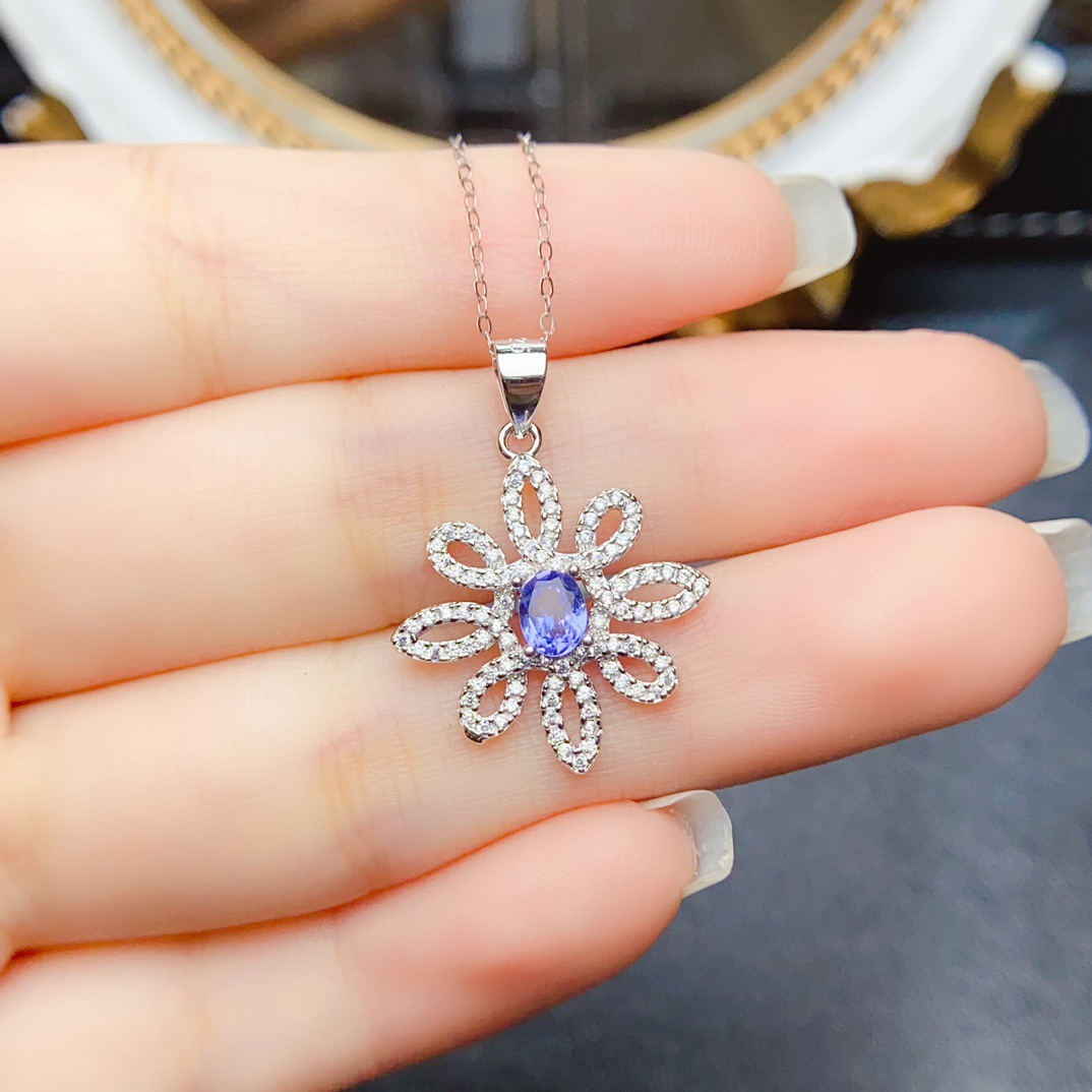 新天然サファイアネックレスS925銀モザイク主石4*6mm百合ネット赤爆金女飾り卸売り