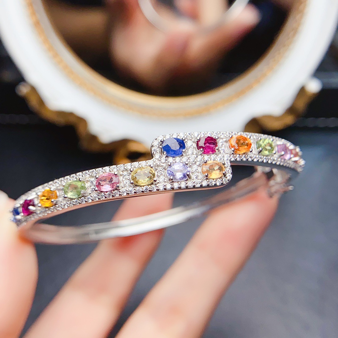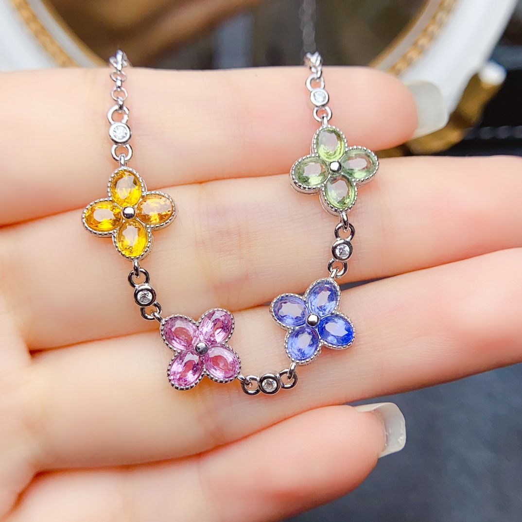 新天然カラー青宝ブレスレットS925銀モザイク主石3*4mm百合ネット赤爆金女飾り卸売り