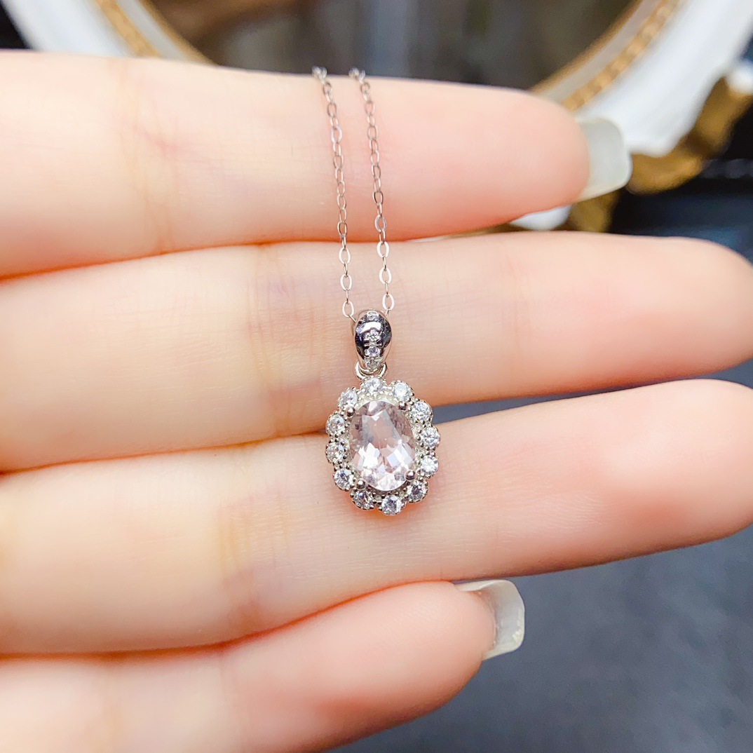 新天然モルガン石ペンダントS925銀モザイク主石5*7mm百合ネット赤爆金女飾り卸売り