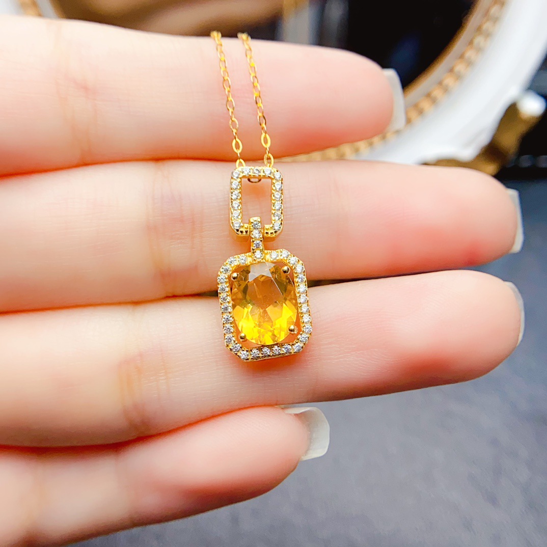 新天然黄水晶ペンダントS925銀モザイク主石7*9mm百合ネット赤爆金女飾り卸売り