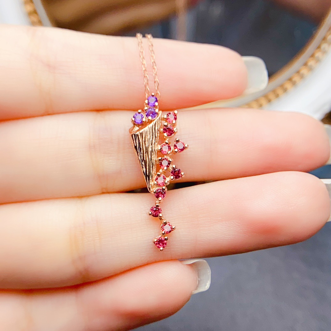 新天然ガーネットペンダントS925銀モザイク主石2*2mm百合ネット赤爆金女飾り卸売り