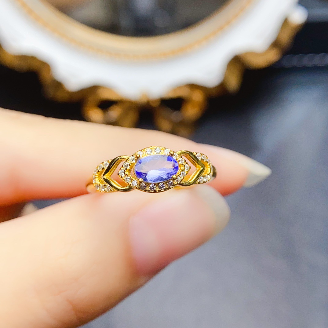 新天然石指輪S925銀モザイク主石4*6mm百合ネット赤爆金女飾り卸売り