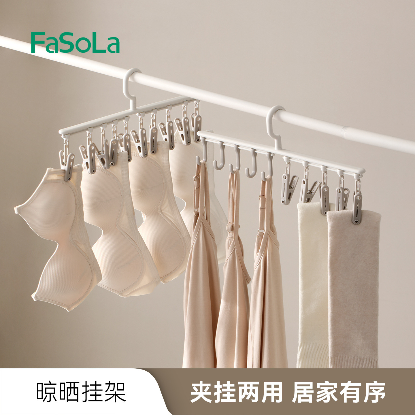 FaSoLa衣柜挂衣钩一字型袜子晾晒神器帽子吊带多功能多夹晾晒挂架