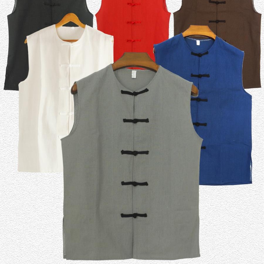 古装綿麻馬甲盤ボタン中国式カン肩袖なしウールベスト古風唐装上着対襟透かし彫り馬クリップ