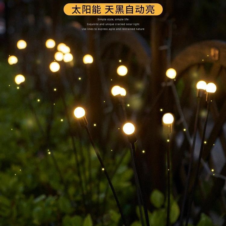 屋外の太陽エネルギーのホタルの明かりの風が揺れる芝生の地面にボールの明かりの花園の庭園の景観の装飾の雰囲気を挿し込みます。