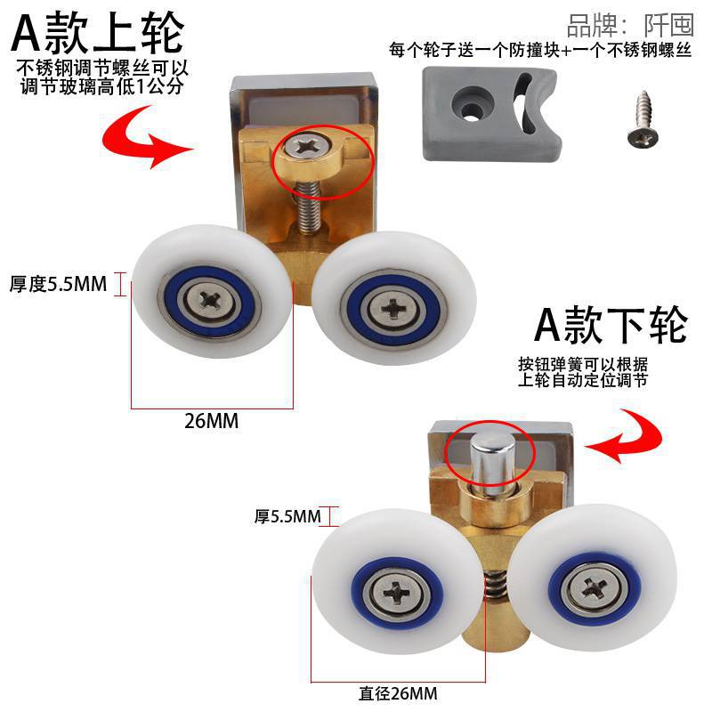工場直売304ステンレス銅体シャワー室プーリー旧式円弧浴室ガラス移動輪二輪吊り輪