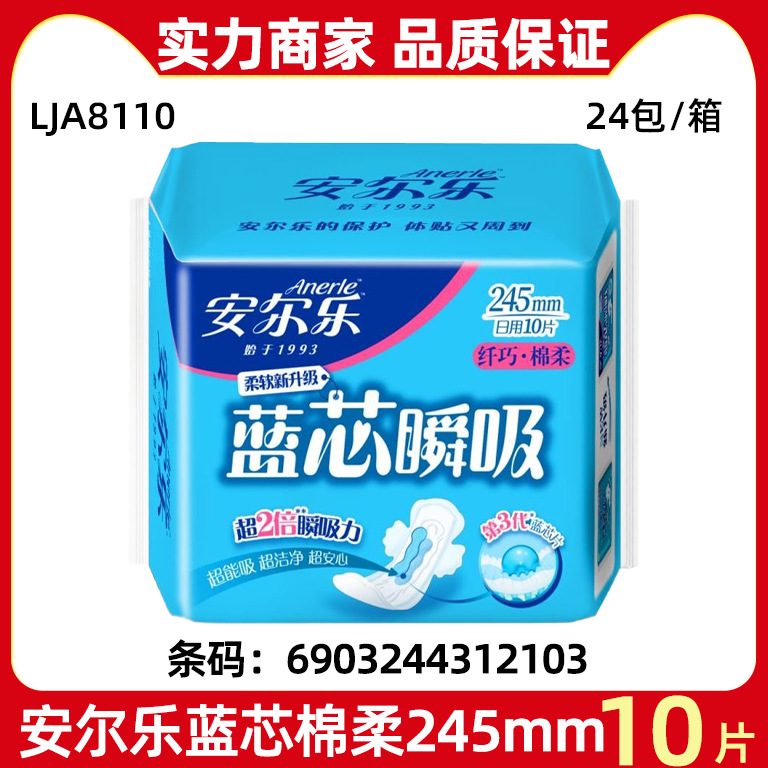 安爾楽生理用ナプキン青芯瞬吸綿柔表層日用10枚245mm叔母タオル