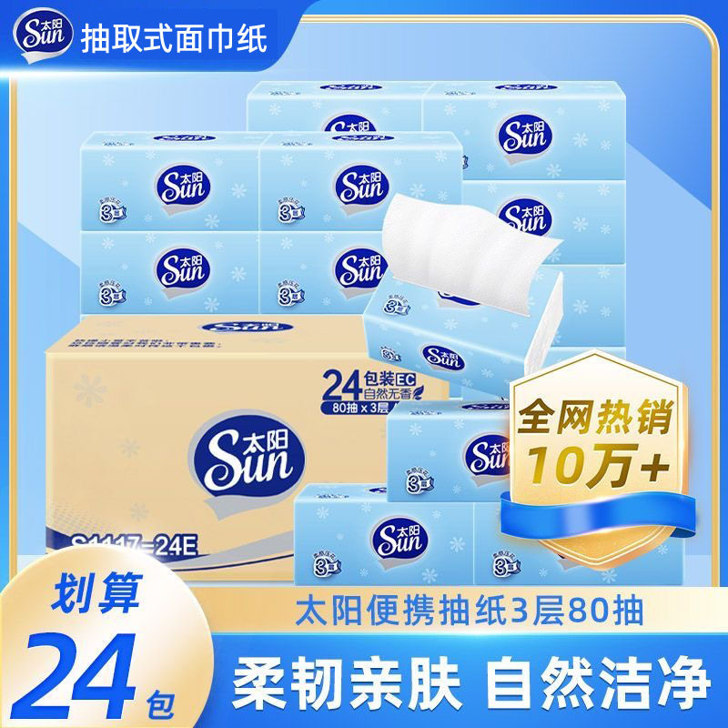清潔で柔らかい吸紙太陽シリーズの全箱卸売り80は3階24包の濡れた水を吸うことができる婦人の赤ちゃんは実利で原木を入れることができる