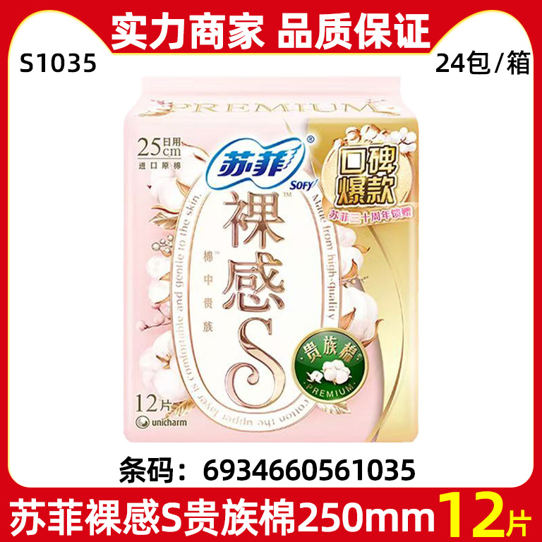 ソフィー 生理用ナプキン フルボックス卸売 ヌードS ノーブルコットン 口コミホットモデル 250mm 12枚入 毎日使用 コットン ソフト 通気性
