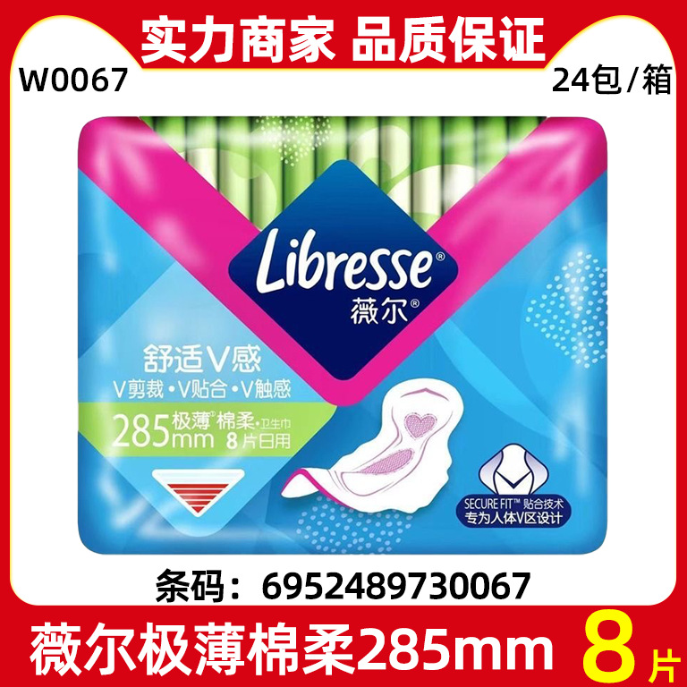 ウィル生理用ナプキン全箱卸売り285mm8枚衛生パッドV感動的フィット綿柔らかい少女Vタオル