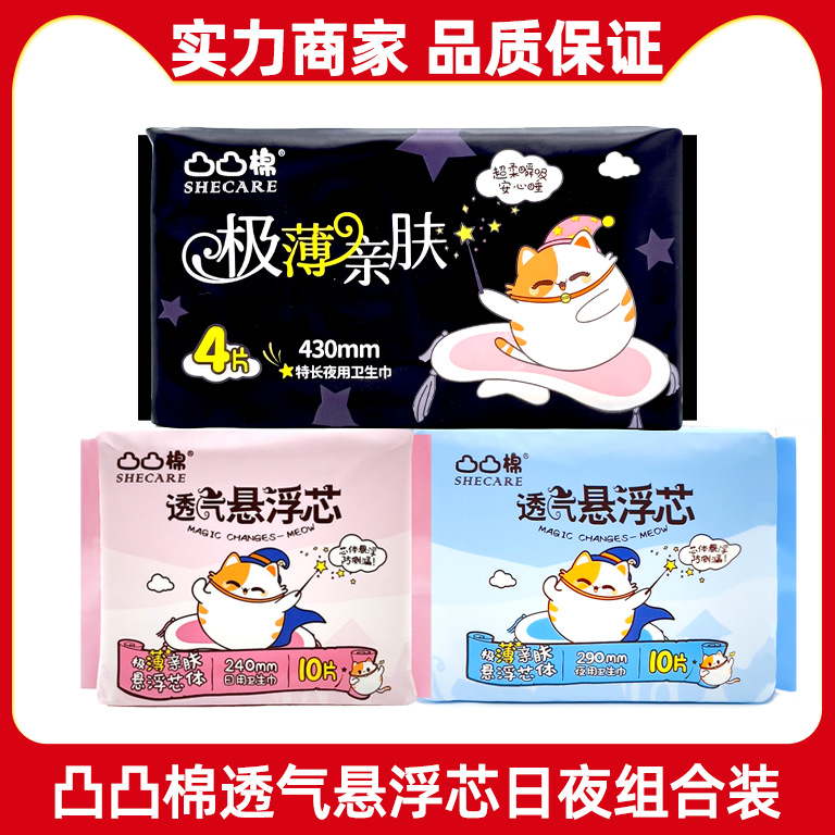 凸面綿生理用ナプキン吊り下げコア超薄型通気性綿ソフト昼夜兼用組み合わせパック学生女の子おばさんナプキン