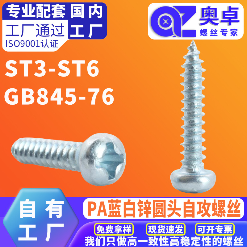 スポット速発亜鉛メッキ青白亜鉛炭素鋼paなべねじ丸頭十字タッピングねじgb 845-76