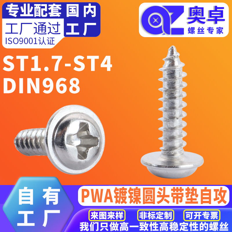ニッケルメッキPWA丸ヘッドパッド付十字タッピングねじDIN968皿ヘッドベルト介自攻ねじガスケット中間子釘