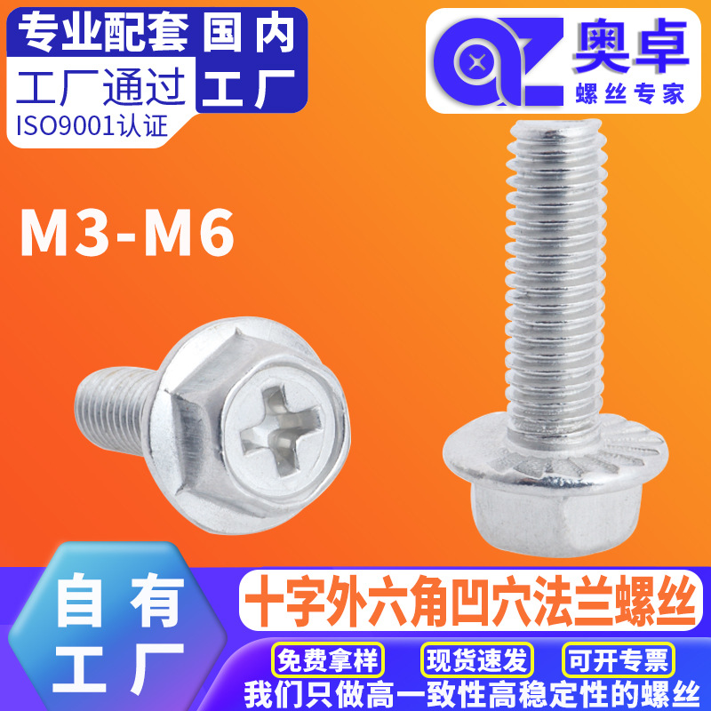 304ステンレス外六角フランジ面ねじ組み合わせ滑り止めセルフロック十字フランジ凹穴歯付きボルト