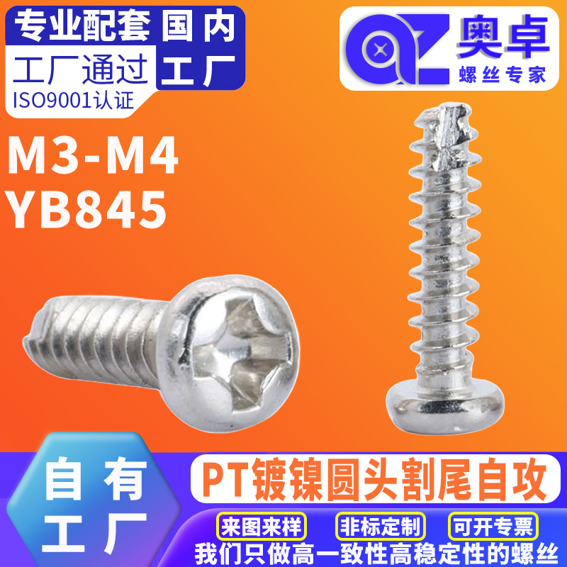 メーカー直売PTニッケルメッキ十字丸頭切り尾タッピングねじYB845盤頭平尾タッピング小ねじ