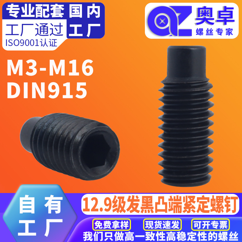 12.9高強度40Cr合金鋼DIN915黒色機米頭なしねじ内六角凸端締め付けねじ