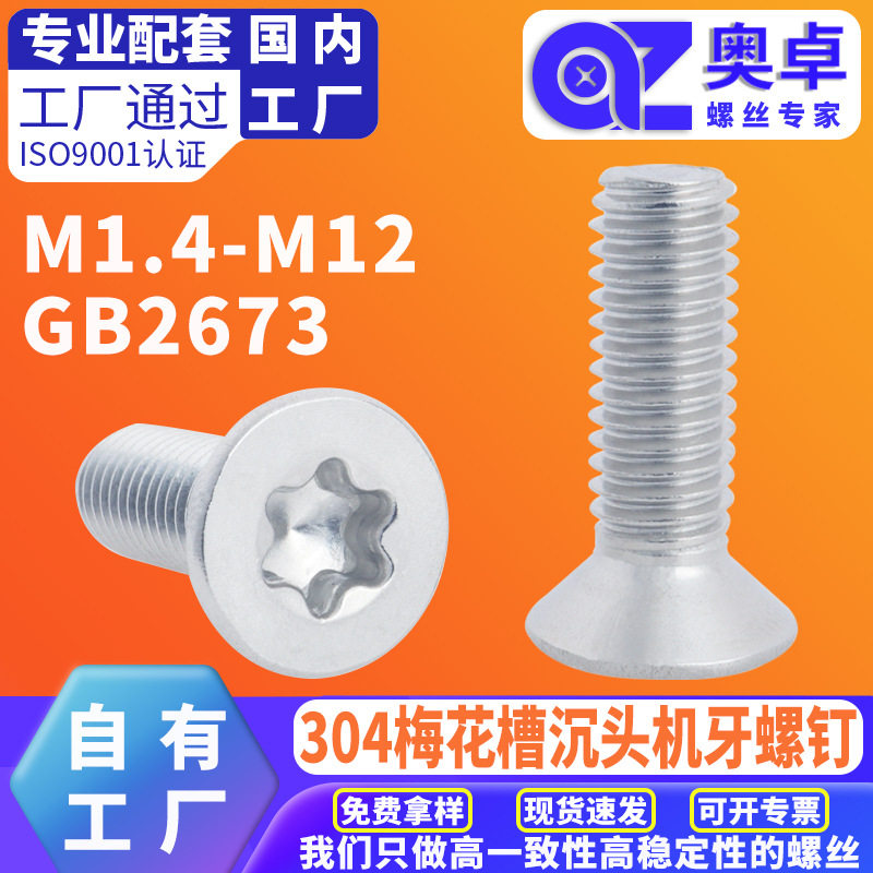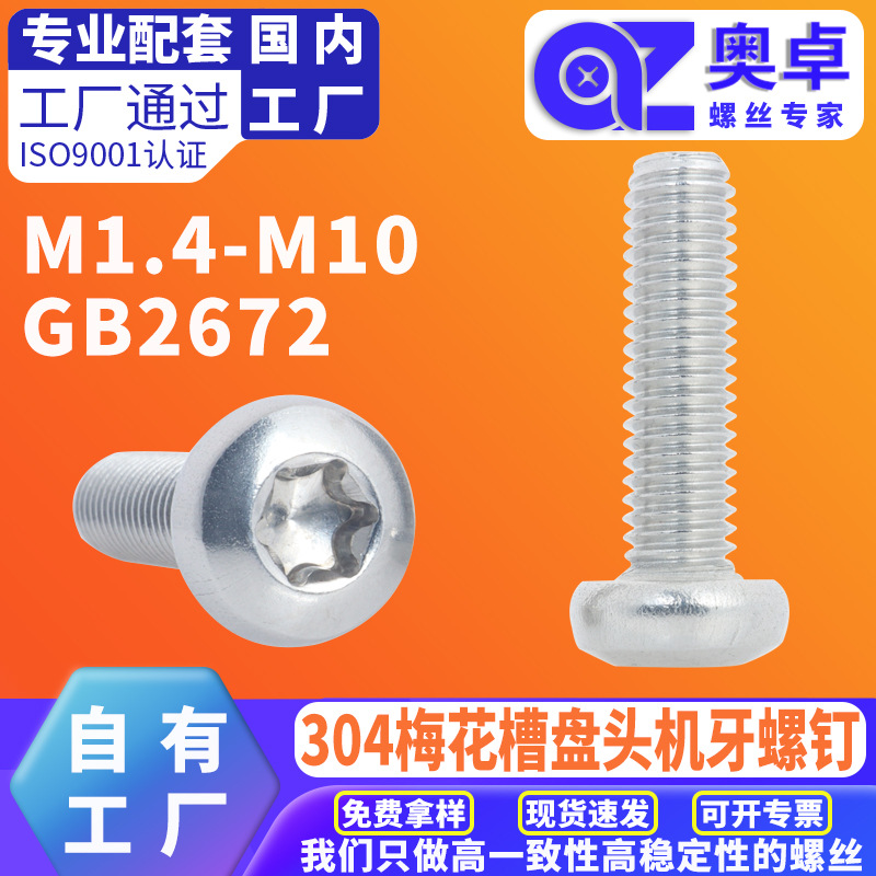 304ステンレス丸頭内梅ねじGB2672内六角梅溝梅花形機歯ねじ