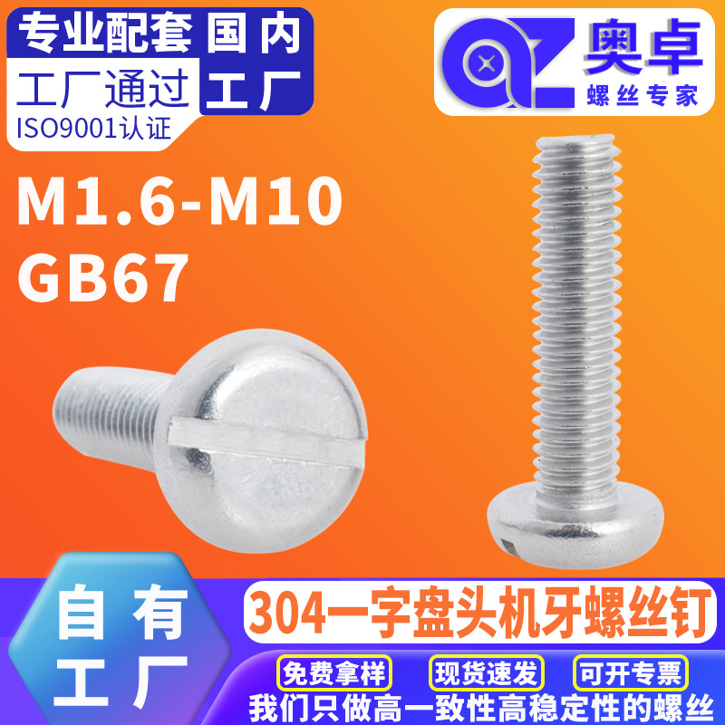 304ステンレス一字丸頭機歯ねじGB67盤頭一字機ねじ一字溝ねじ卸売り