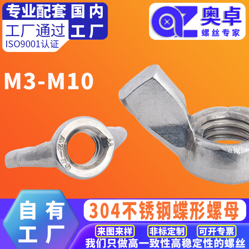 304ステンレスバタフライナット手ねじり羊角ナット蝶ナット蝶型元宝ナットm3/m4/m 6/m 8