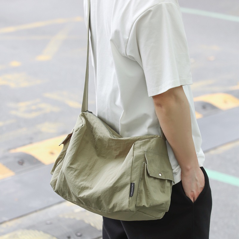超軽量中性ショルダーバッグ男性カジュアル日系シンプルな工装通勤百合斜めショルダーバッグ女性軽量郵便バッグブーム
