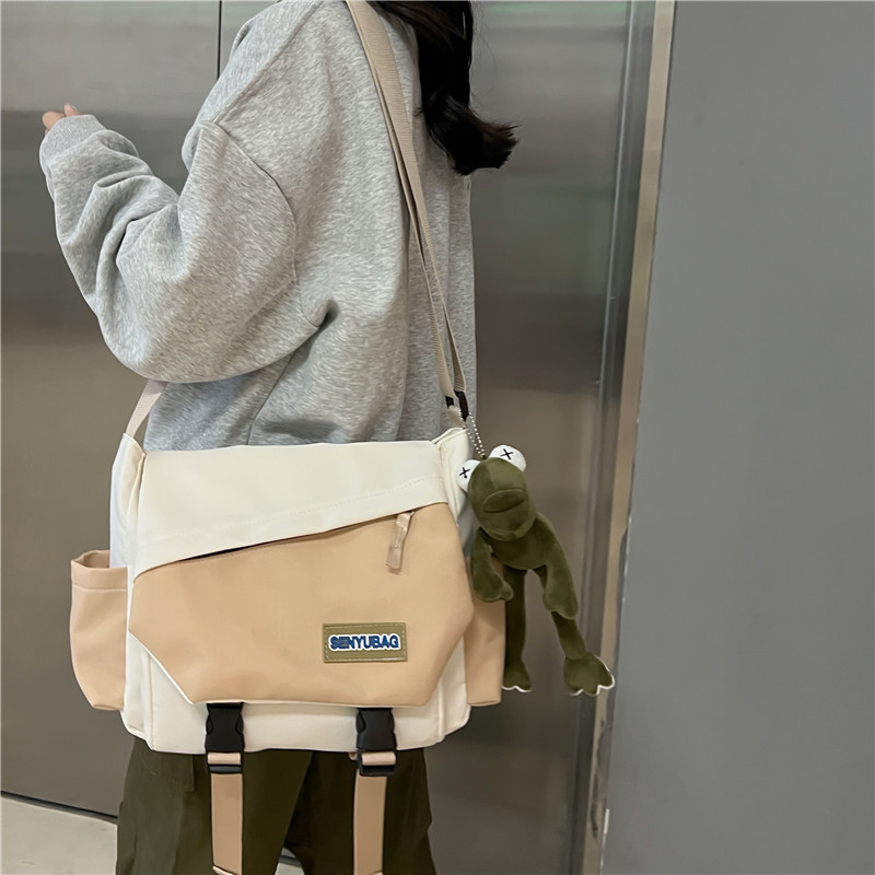 複合布ショルダーバッグ男性大学生授業リュックサック女性日本ファッションブランド大容量ショルダーバッグ