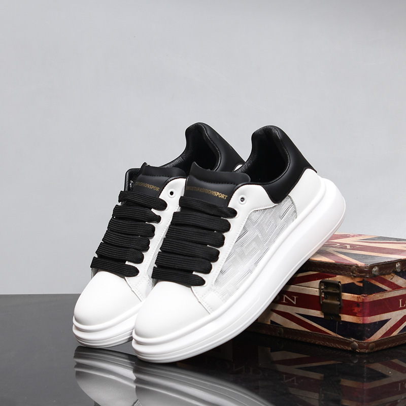 麦昆白靴男靴夏の薄いタイプの通気性ネット面の厚い底の運動板靴のファッションレジャーネット靴男KY509
