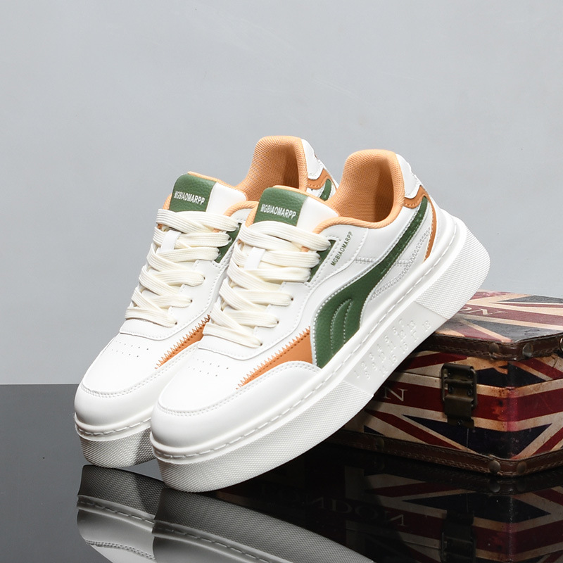 麦昆本革の白い靴の男性の春と夏の低い靴の百合の厚い底の高くなる男性の靴のレジャーの運動の板の靴の9053