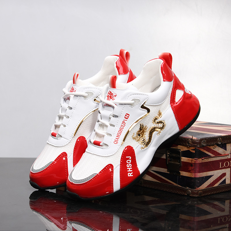 本命年龍年2024春の新しい赤いバッグの底のお父さんの靴の本革の刺繍の柔らかい底のレジャーの男性の靴