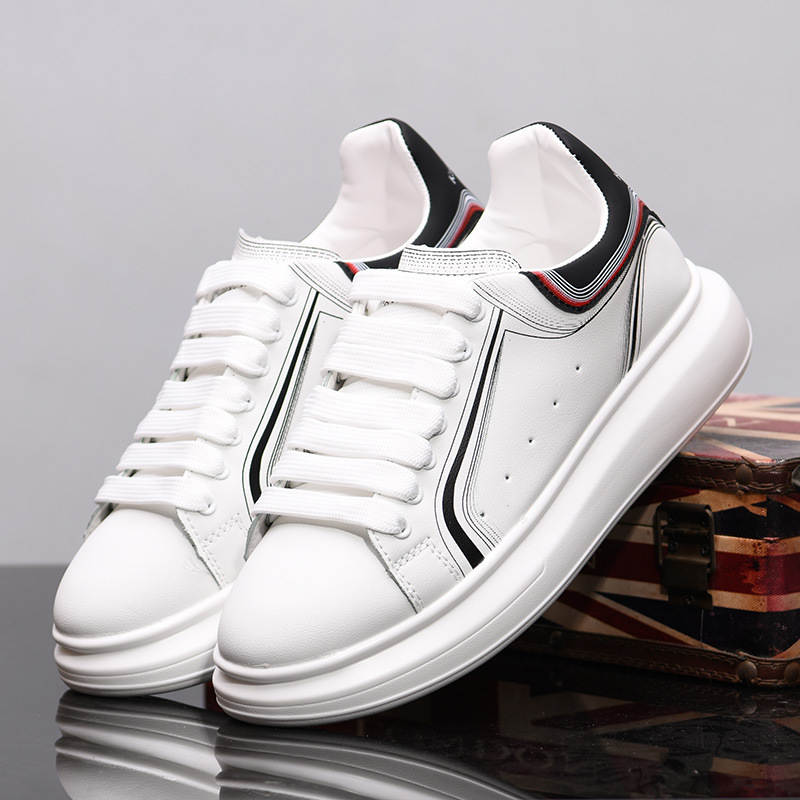 麦昆白靴男本革の厚い底の板靴の秋の新型は高くなります。