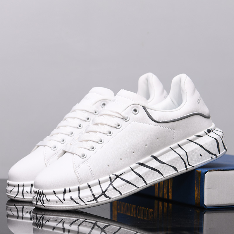 麦昆男靴の新型春の通気性はカジュアルな板靴のカップルのプリント運動の厚い底の白い靴の潮536になります。
