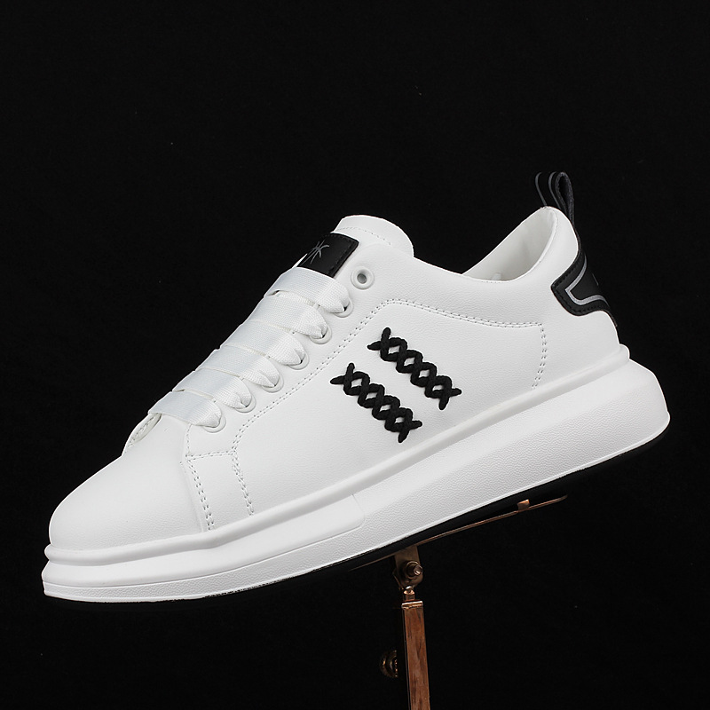 男の靴の秋の白い靴の厚い底の新型のビスケットの靴の薄いタイプのカジュアルな板の靴は高くなります。