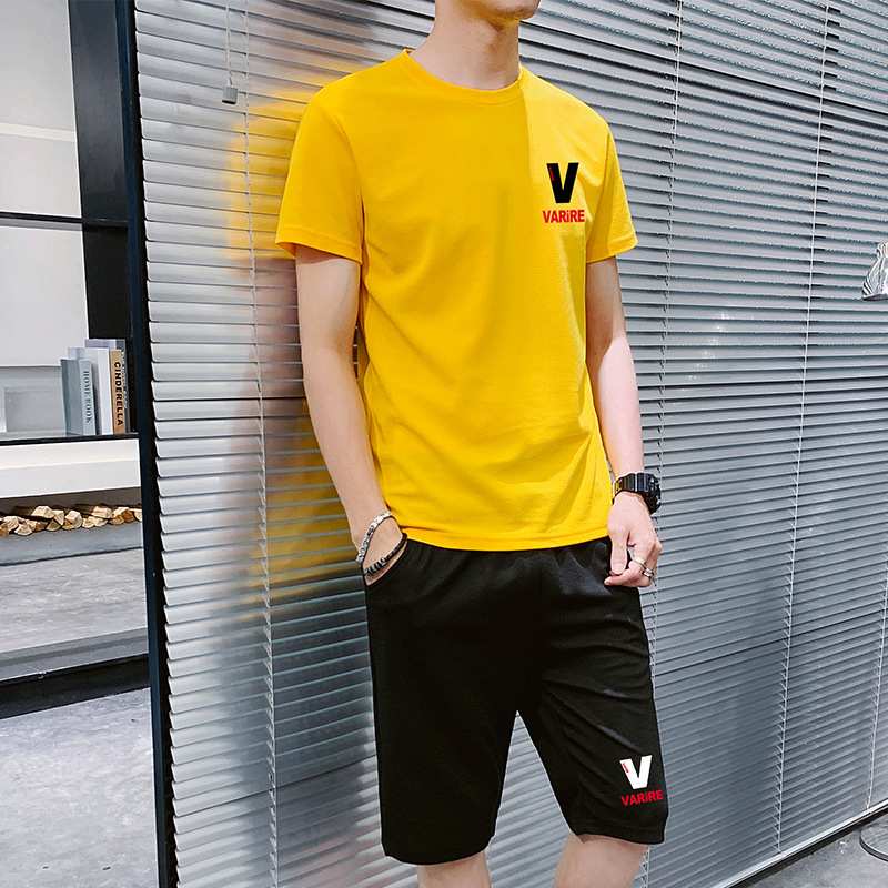 スポーツスーツ男性夏フィットネス男性速乾半袖tシャツセットランニングゆるいカジュアルスポーツウェア大きいサイズ