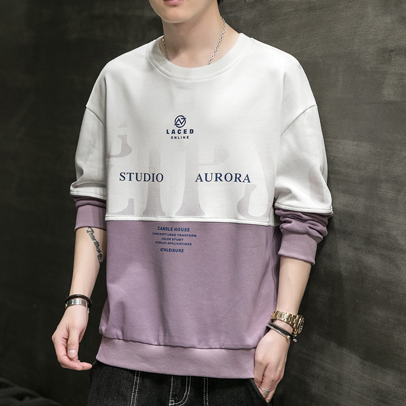 秋の新型のパーカーの韓国版の青少年の潮流の丸首の長袖のtシャツの紳士服の学生のレジャーのinsの底のシャツの男