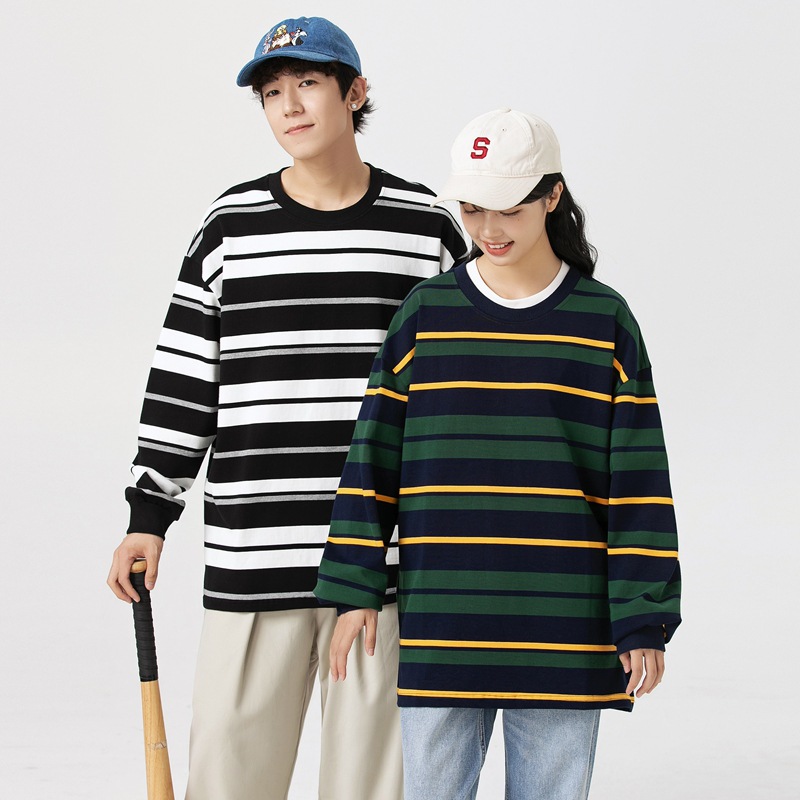 2024新型春秋メンズ280g重ポンドストライプ丸首長袖tシャツカーディガン