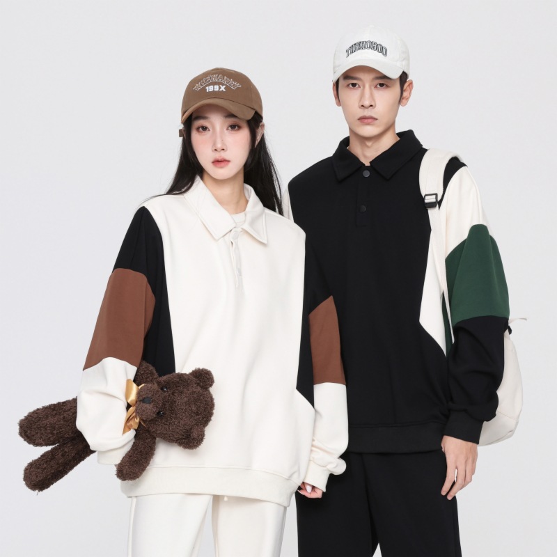 春秋poloシャツの男性女子学生はファッションブランドを厚くして、長袖tシャツのカップルのコートにぶつかります。