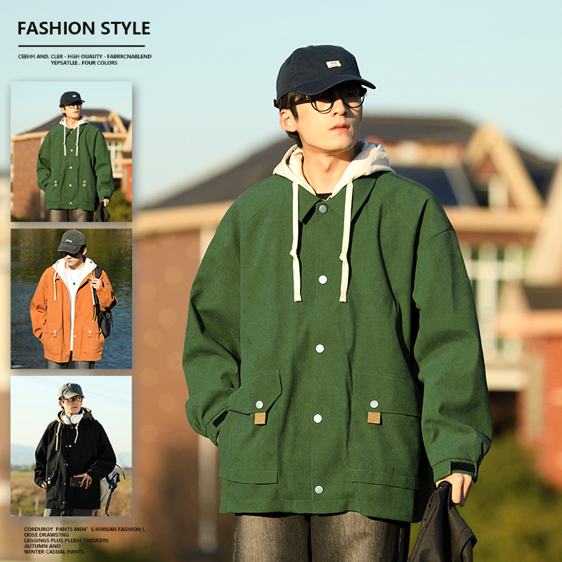 2025新型ゆるい男性フード付きカップルジャケット青少年トレンド多ポケット上着男女コート品