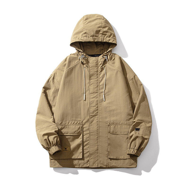 春秋工装突撃服コート男2025新型帽子付きカジュアル早春夏の薄いスポーツごろつきのかっこいいジャケット