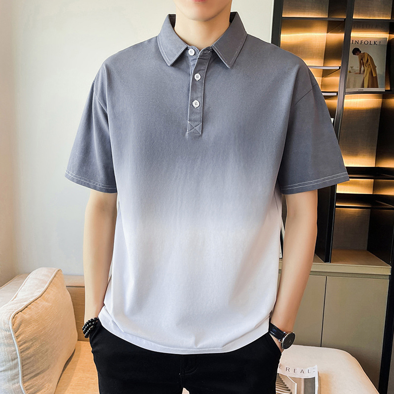 男性poloシャツ夏の新型ファッションブランドグラデーション底シャツファッション襟半袖tシャツ男性ins薄い男性服