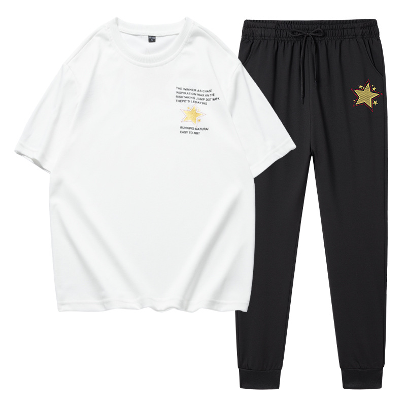 男性のスポーツとレジャーのセット2025夏の新型のファッションブランドのかっこいい組み合わせのファッションの半袖の青少年の2つのセット
